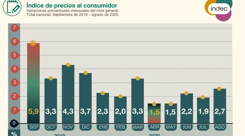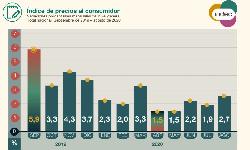 A pesar de la cuarentena y la recesión, agosto arrojó una inflación de 2,7 por ciento