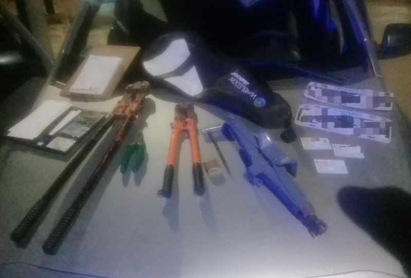 En el procedimiento, se secuestraron dos corta pernos, un gato mecánico, una ganzúa y dos chapa patentes (una de ellas correspondiente a un vehículo que registra pedido de secuestro), entre otras herramientas y elementos, además del rodado mencionado.