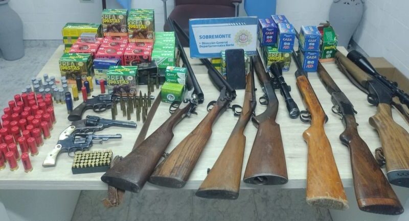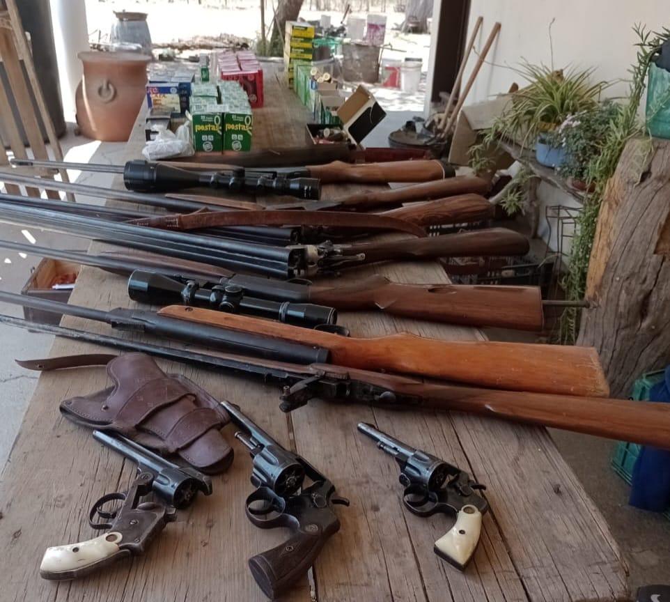 Tal operativo culminó con el secuestro de nueve armas de fuego: tres revólveres, tres escopetas, dos fusiles, una carabina, además de una gran cantidad de cartuchos, un rifle aire comprimido y un teléfono celular.