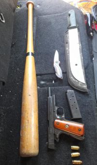 Se trata de “un arma de fuego calibre 11/25 con cartuchos, un arma blanca tipo machete, un bate de béisbol y varios precintos”.