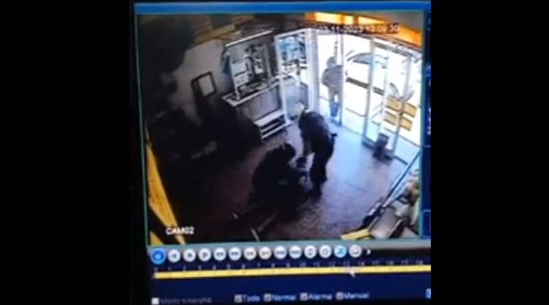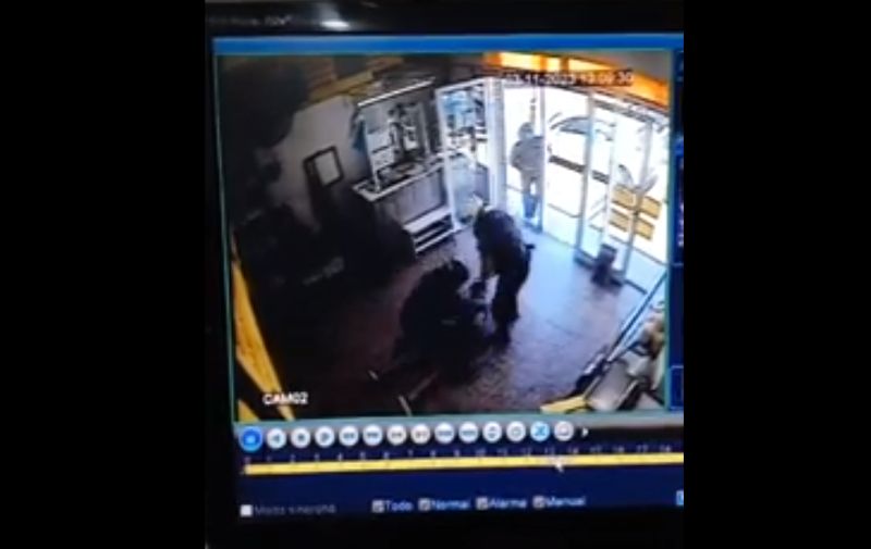 El hecho ocurrió el viernes 3 de noviembre pasado cuando un motochoro arrebató un celular y se dio a la fuga. Finalmente, fue detenido cuando intentó hacerse pasar como un cliente en la carnicería Nacho, ubicada en avenida de Mayo casi Pilcomayo, en Villa El Libertador. El video muestra el ingreso del malviviente al local y de inmediato la irrupción de los policías, quien los hacen poner boca abajo para esposarlo y reducirlo.