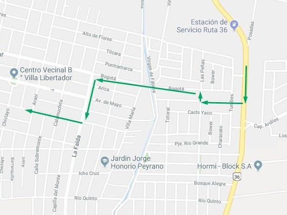 Línea 53 del Centro: Su ruta, Vélez Sarsfield, Arica, Bogotá, La Falda, Gobernación, su ruta.