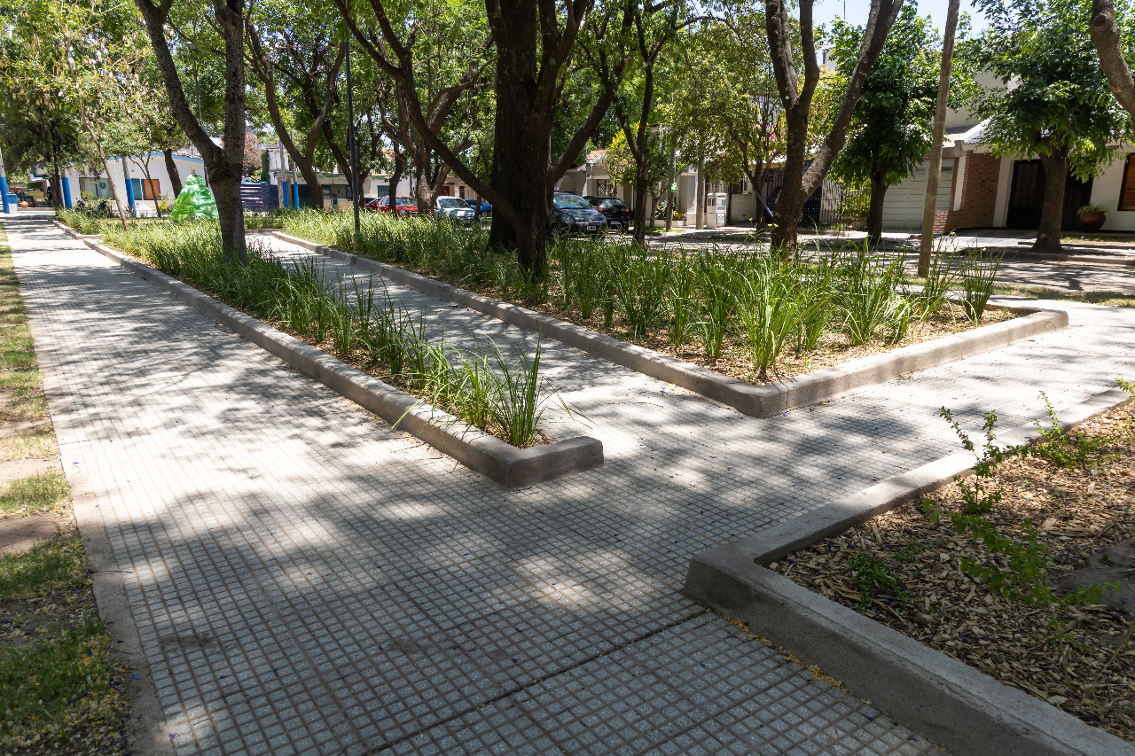 Al mismo tiempo, a solo cuatro cuadras de este espacio, el Municipio capitalino ejecuta obras similares en la plaza de barrio Inaudi Anexo, próximas a culminar.