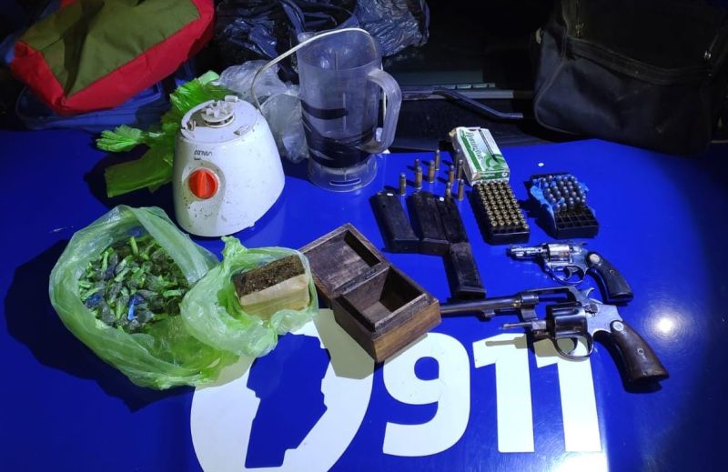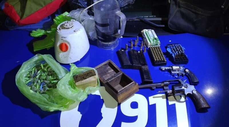 En las últimas horas, en Callejón s/n & Cno. Nacional, personal policial aprehendió a un hombre de 28 años y a una mujer de 35, junto al secuestro de una motocicleta Keller 100cc en la que se conducían, dos armas de fuego, varias municiones, una bolsa de nylon con marihuana compactada en forma de ladrillo y 140 dosis de la misma sustancia, entre otros elementos.