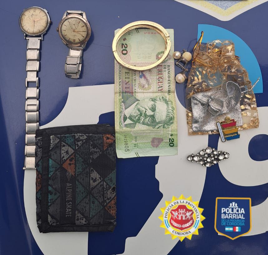 En horas de la tarde, en el interior de una vivienda de Bº Jardín Espinosa, fue sorprendido y detenido un hombre de 38 años, con el secuestro de dos relojes pulsera, una billetera y una pulsera, entre otros elementos que habría intentado sustraer del interior del inmueble. El procedimiento se realizó en un domicilio de Av. Teniente General Pablo Richieri al 3700. El detenido fue puesto a disposición de la Justicia.