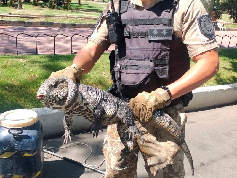 Capturan un lagarto en el Parque Sarmiento