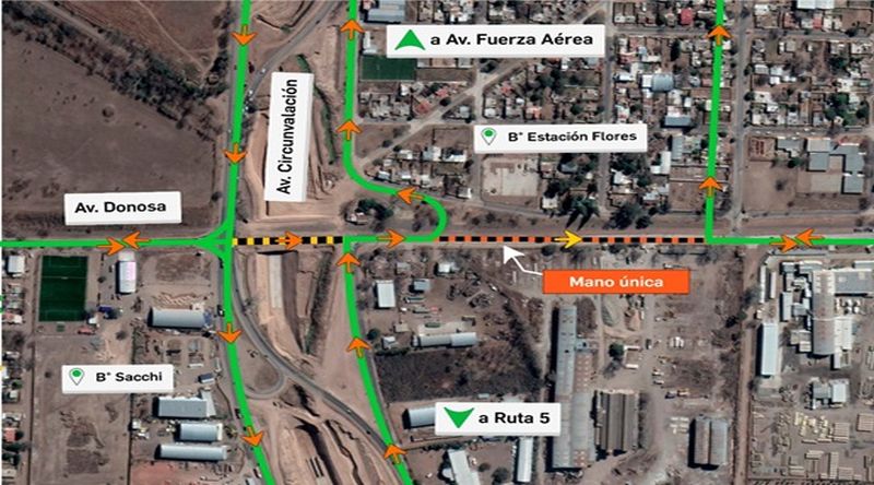 Por ahora se abrió al tránsito la circulación en sentido oeste-este, con lo cual los vehículos que van desde la avenida Fuerza Aérea por la colectora de Circunvalación (en esa zona las calzadas principales están en obra) podrán cruzar hacia el lado izquierdo a través de este puente. Próximamente se habilitará la otra mano (en sentido este-oeste).