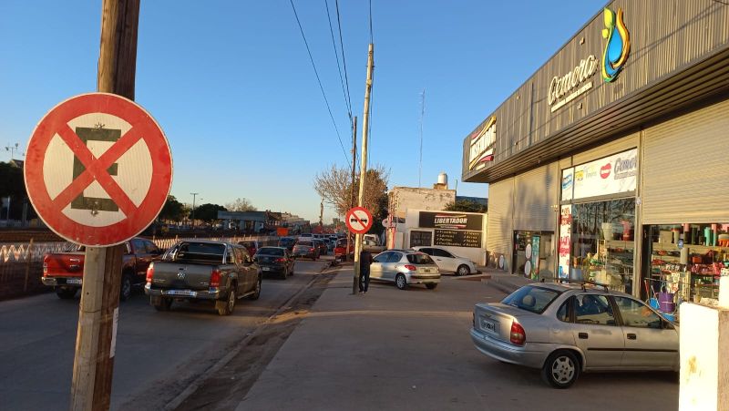 En la calle colectora recién hecha está el cartel de prohibido estacionar por el hecho de que es una vía angosta y transitada. Pero esto conspira contra la llegada de los clientes. Los autos siguen de largo, no tienen lugar para estacionar, entonces nadie se baja por una compra.