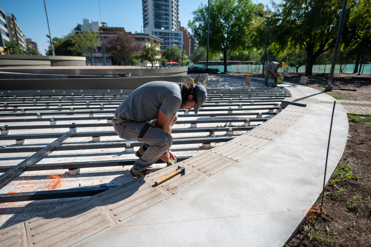 La Municipalidad de Córdoba ya coloca el piso ecológico sobre las fuentes de Plaza de las Américas. Allí se conformará un “espacio de encuentro” para el desarrollo de actividades culturales.