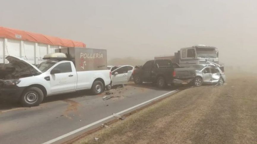 El choque en cadena se registró en el marco de vientos de hasta 75 kilómetros por hora y una importante cantidad de polvo en suspensión que reducía en forma drástica la visibilidad.