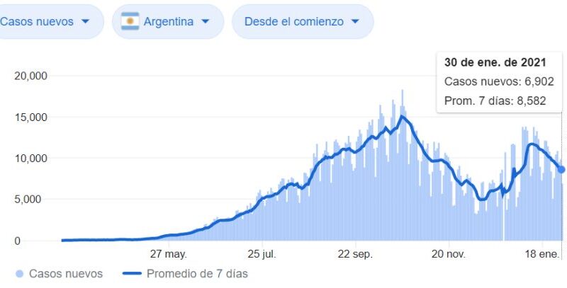 Este domingo 31 de enero además se notificaron 43 fallecimientos por la enfermedad, con lo cual hasta el momento la cantidad de personas fallecidas en todo el país es de 47.974.