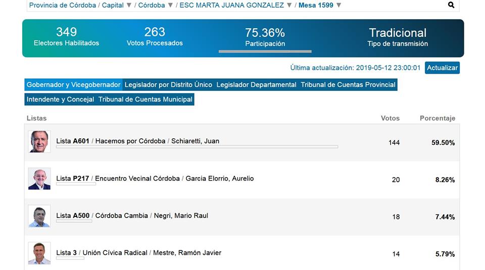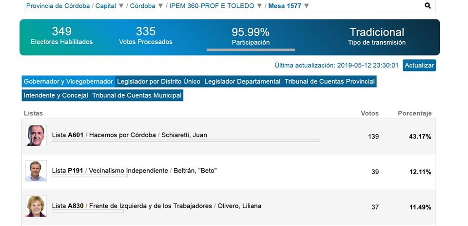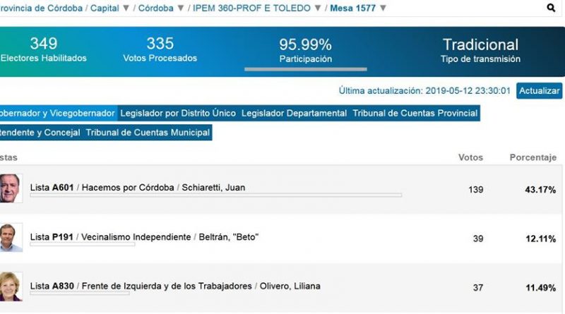 Curiosidad 3: En una mesa del Marta Juana (ver captura) Aurelio García Elorrio, de Encuentro Vecinal Córdoba, obtuvo el segundo puesto en la elección para gobernador (en la general saldría cuarto). Con el 8,2% de los votos escrutados, desplazó en esta mesa a Negri, quien salió segundo en la elección general.