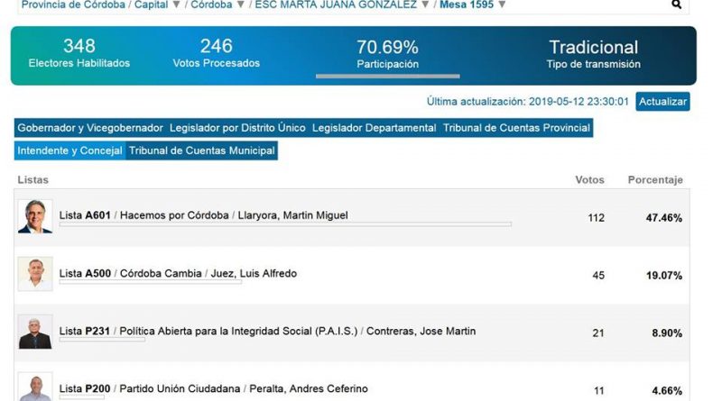 Curiosidad 2: En una mesa del Marta Juana González aparecen dos candidatos “tapados” ocupando el tercer y cuarto puesto en la elección para intendente. Se trata de José Contreras, de País, con casi 9%, y Andrés Peralta, del Partido Unión Ciudadana, con 4,6%. En la mesa indicada (ver captura) ambos desplazaron a De Loredo y Quinteros, el tercero y cuarto de la votación general.