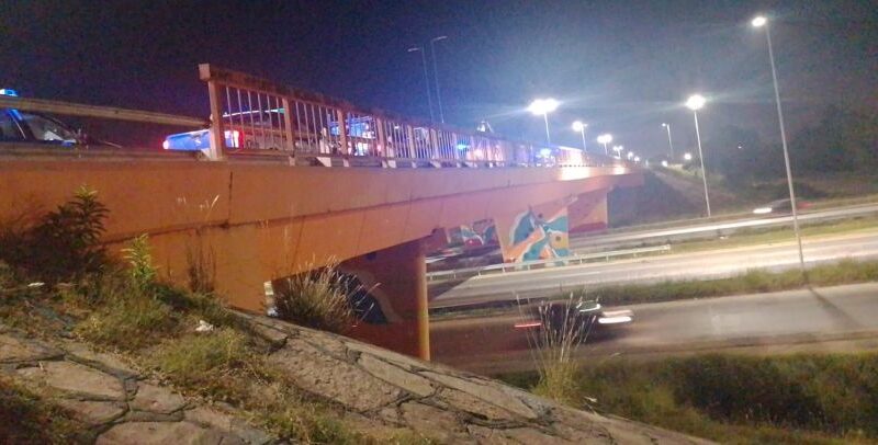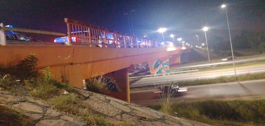 Según el parte policial, “un sujeto en moto informa que había un sujeto del otro lado de la barandilla con aparentes intenciones de arrojarse desde el puente”.