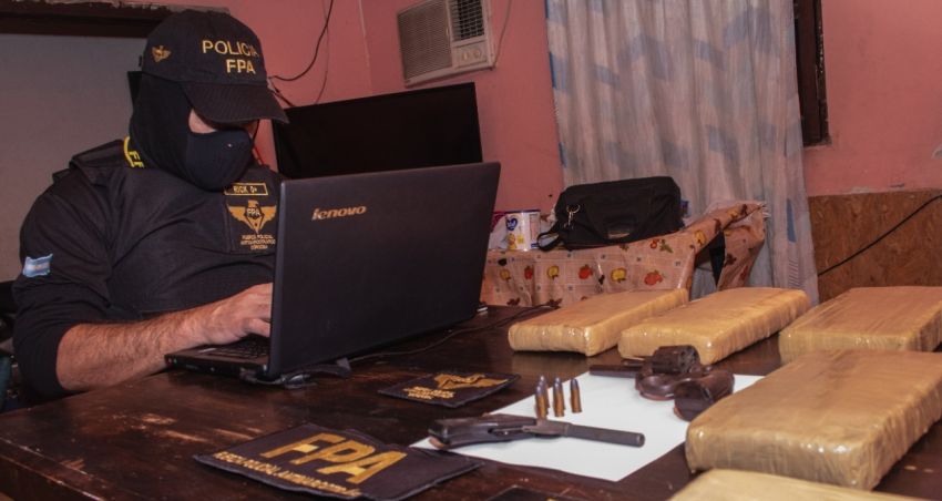 En las viviendas, con destacada labor de investigadores de la FPA y canes detectores de narcóticos de la División K-9, se logró el secuestro de siete ladrillos de marihuana y una cantidad menor de dicha sustancia fraccionada en envoltorios que ascienden a un peso de 6,8 kilos. También se decomisaron dosis de cocaína, dos armas de fuego, munición, dinero en efectivo ($173.000), entre otros elementos y documentación de interés para la causa.