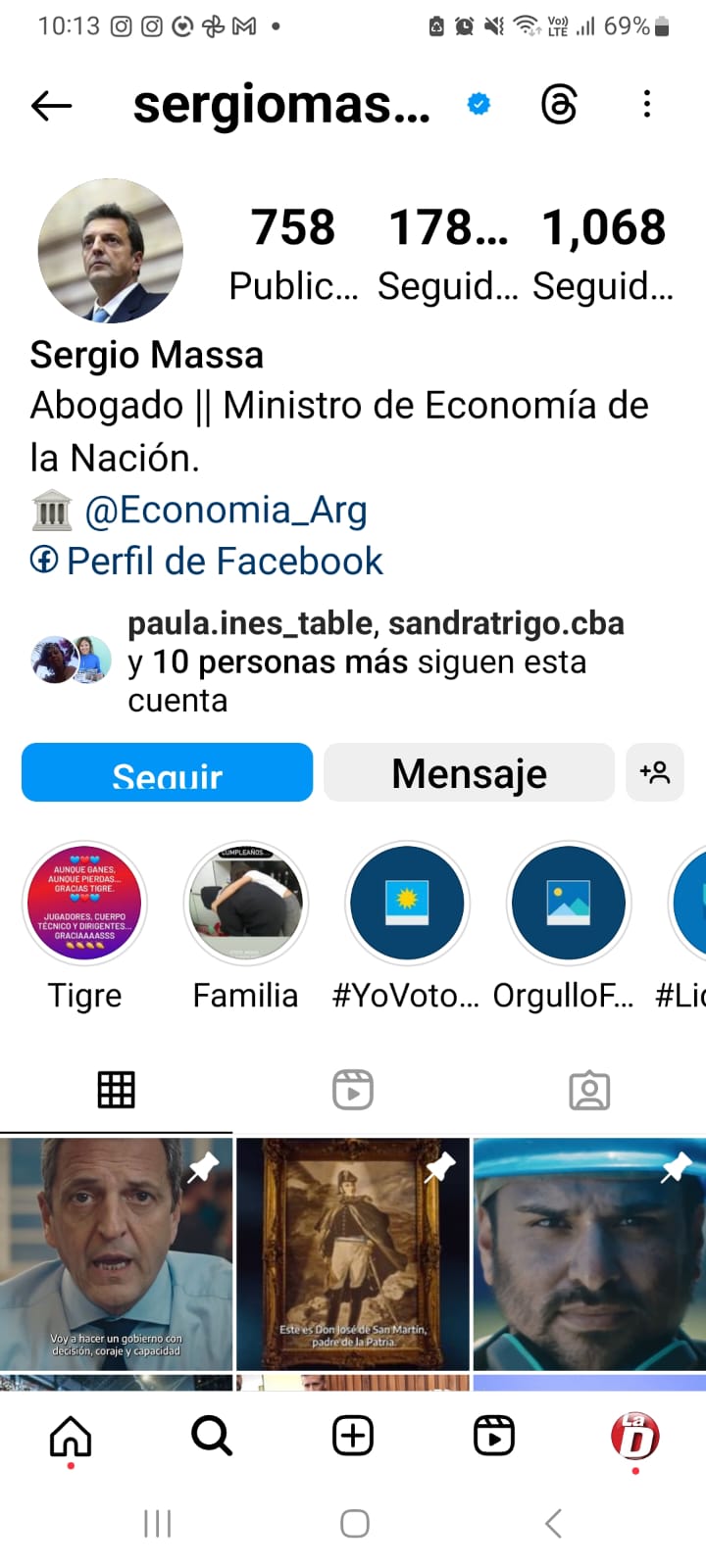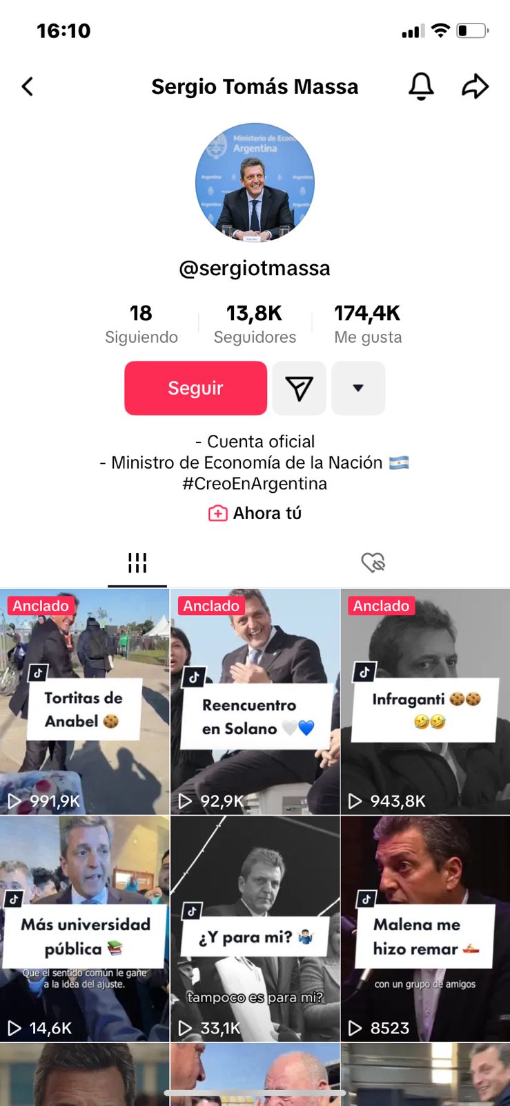 Por último, el candidato del oficialismo Sergio Massa es el menor beneficiado por las redes sociales. En TikTok solo presenta 13,8 mil seguidores y en Instagram, 178 mil más. Los me gusta de Massa son austeros: apenas 5 o 6 mil.