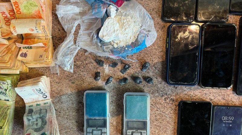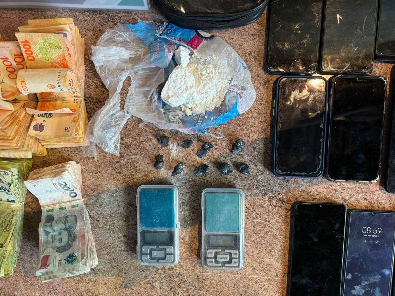 Durante la mañana se realizaron 12 órdenes de allanamientos en distintos sectores de la ciudad y se detuvo a dos personas mayores con el secuestro de una suma de dinero en efectivo, 50 cédulas de identificación, 50 tarjetas de una entidad bancaria, 16 teléfonos celulares, balanzas de precisión, marihuana y cocaína, entre otros elementos relacionados a hechos delictivos que se investigan.
