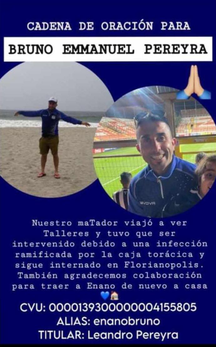 “El ahora está en terapia pero estable, pero lo que pedimos como familia es si a través del club o del gobierno de Córdoba nos pueden ayudar con su traslado ya que no cuenta con obra social”, cuenta su hermana Nadia Pereyra a La Décima.