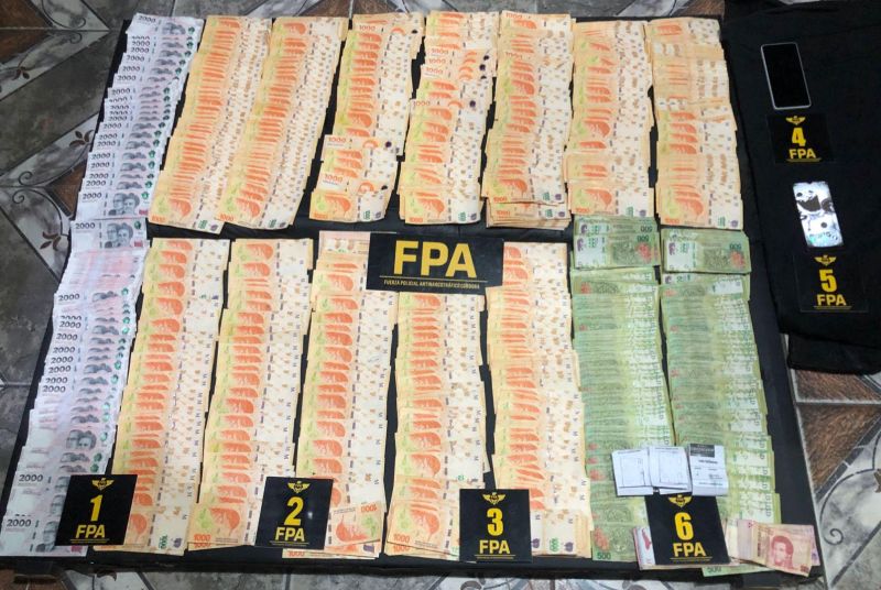 El operativo fue llevado a cabo sobre calle San Martín s/n de la importante ciudad del departamento Cruz del Eje. En la vivienda, se logró la incautación de dinero ($1.447.010), un automóvil y diversos elementos relacionados a la comercialización de estupefacientes.