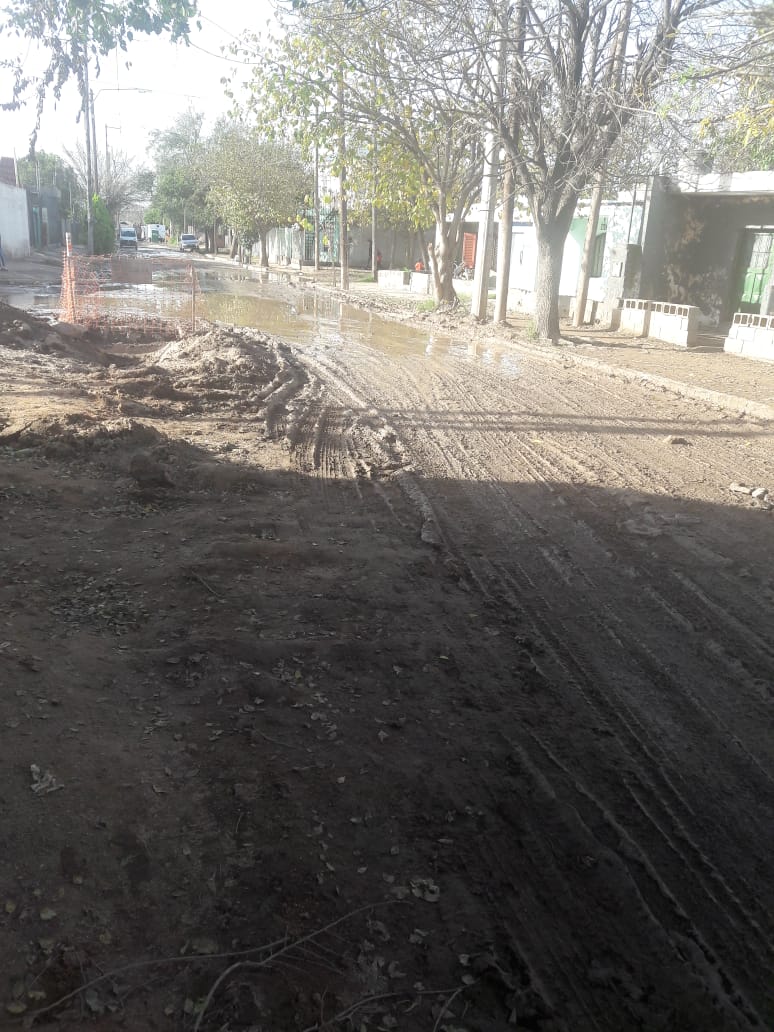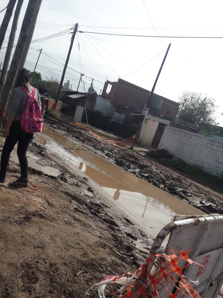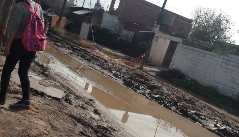 “Cuando terminaron de hacer las cloacas en esa calle se fueron para otro lugar y dejaron todo así nomás. La calle llena de agua y barro, y pozos en las veredas”, señala. Aclara que desde hace unos dos meses “está todo igual: las maestras no pueden subir sus autos y los papás de los niños que van al jardín Arco Iris (Icho Cruz 453) terminamos embarrados porque ni siquiera en la vereda podemos caminar”.