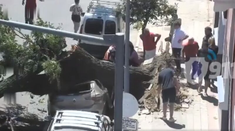 Impactante caída de un árbol sobre tres autos