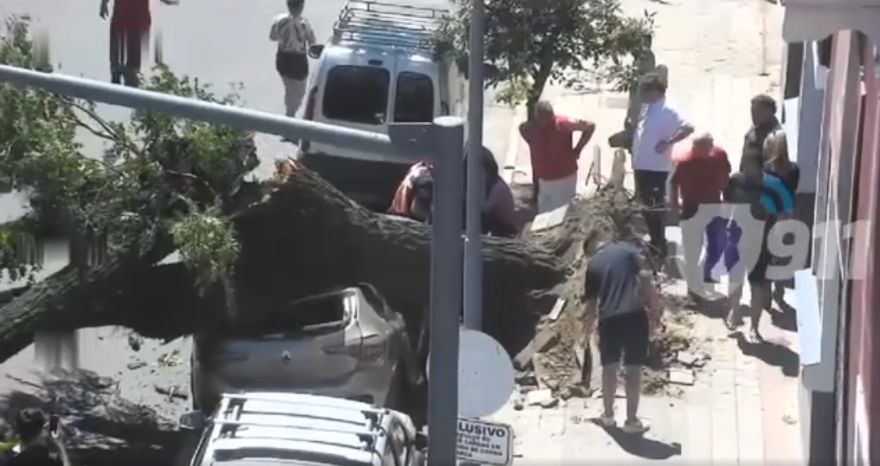 En calles Gral. Alvear y Libertad de Bº Centro se cayó sobre la calzada en las últimas horas un viejo árbolo provocando daños en tres vehículos estacionados en la vía pública: Renault Stepway, Toyota Corolla y Renault Clío. Producto de ello, resultó lesionada una automovilista de 37 años, debido a que se encontraba descendiendo del auto. Al lugar se hizo presente un servicio de emergencias que asistió a la damnificada diagnosticándole traumatismos leves, no requiriendo su traslado.