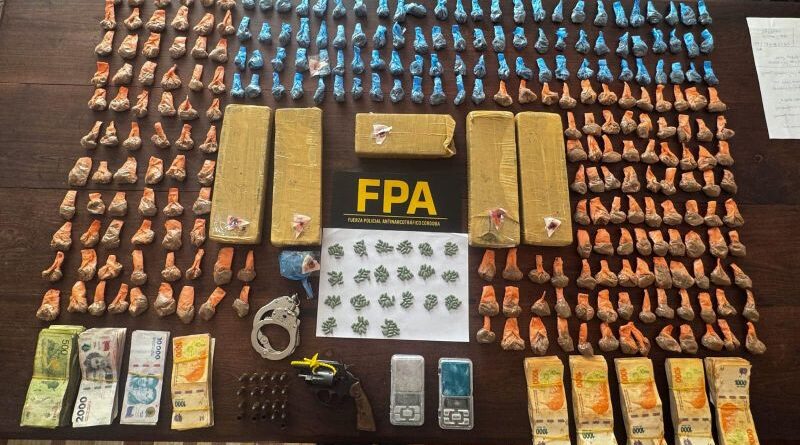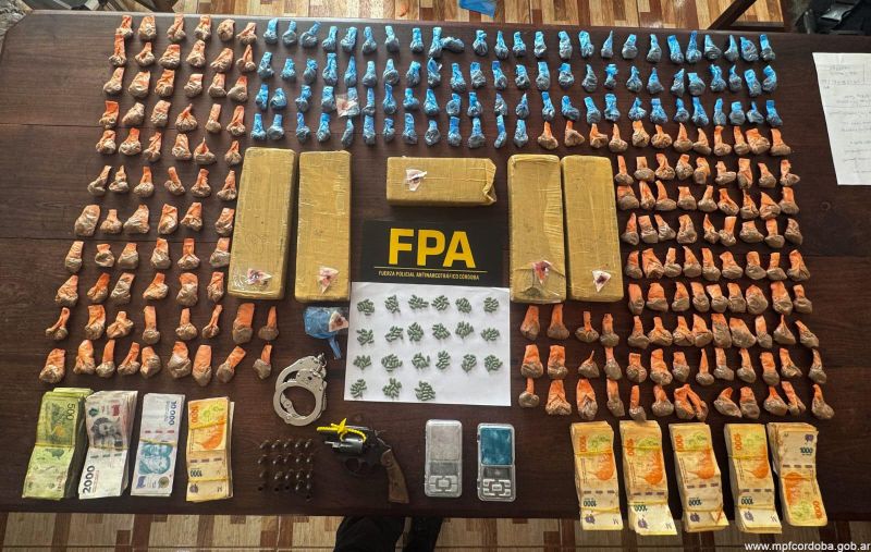 El operativo tuvo lugar en dos viviendas ubicadas en Pasaje s/n del barrio Barranca Yaco, de la capital cordobesa. Durante el dispositivo los oficiales de la Fuerza detuvieron a una mujer (18) y un hombre (32). En los registros de los domicilios, los investigadores incautaron 7412 dosis de marihuana, 17 de cocaína, 228 pastillas, un revólver, 17 cartuchos, dos balanzas, esposas, dinero ($1.161.000) y elementos relacionados al fraccionamiento de sustancias ilícitas.