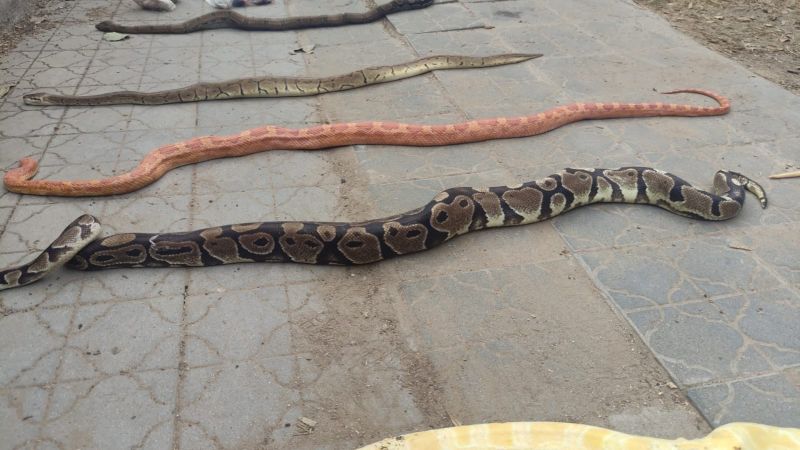En calle Javier Díaz al 1207 de B° Jardín, personal de la Dirección General Patrulla Rural secuestró a 5 serpientes (1 Pitón Albina, 1 Pitón Bola, 1 Serpiente del Maizal, 2 Pitón) y 21 roedores (ratones) sin vida.