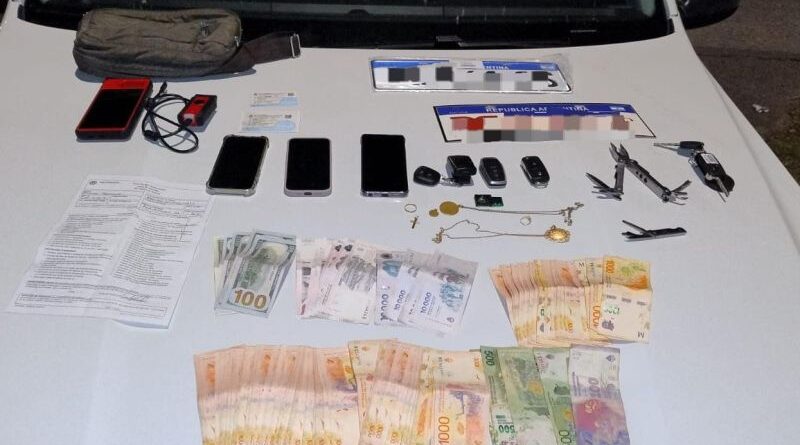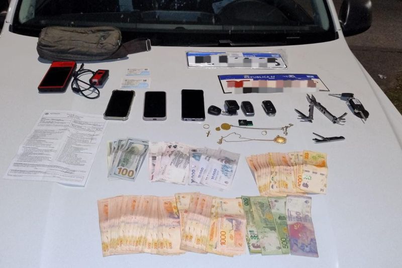 Durante el control preventivo, se constató que los individuos poseían cuatro inhibidores de alarmas, un scanner de automóvil (inhibidor de computadora de vehículo), tres teléfonos celulares, dinero y una cédula verde correspondiente a una Toyota Hilux que registra pedido de secuestro de la Provincia de San Luis.