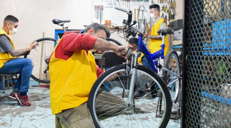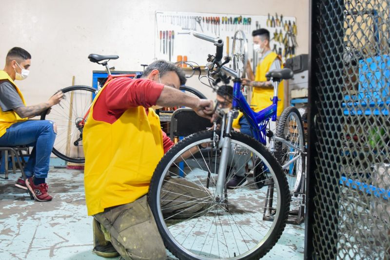 Los talleres de refacción de bicicletas que tiene lugar en el MD1 del Complejo Carcelario Nº 1 «Reverendo Francisco Luchesse» comenzaron a funcionar en 2021, en articulación con el Ministerio de Promoción del Empleo y la Economía Familiar y la Cámara Argentina de Comercio e Industria de Bicicletas, Partes, Rodados y Afines (COMMBI), integrados al programa “Reparar”.