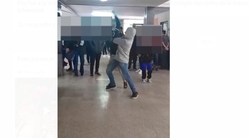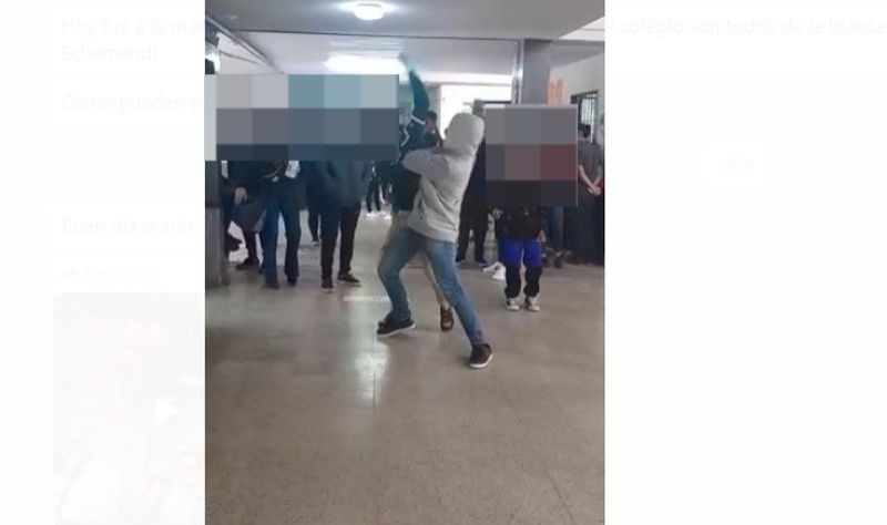 Al WhastApp de La Décima llegaron videos de alumnas y alumnos de la institución agrediéndose de modo salvaje en las afueras del colegio, mientras un grupo agita la pelea.
