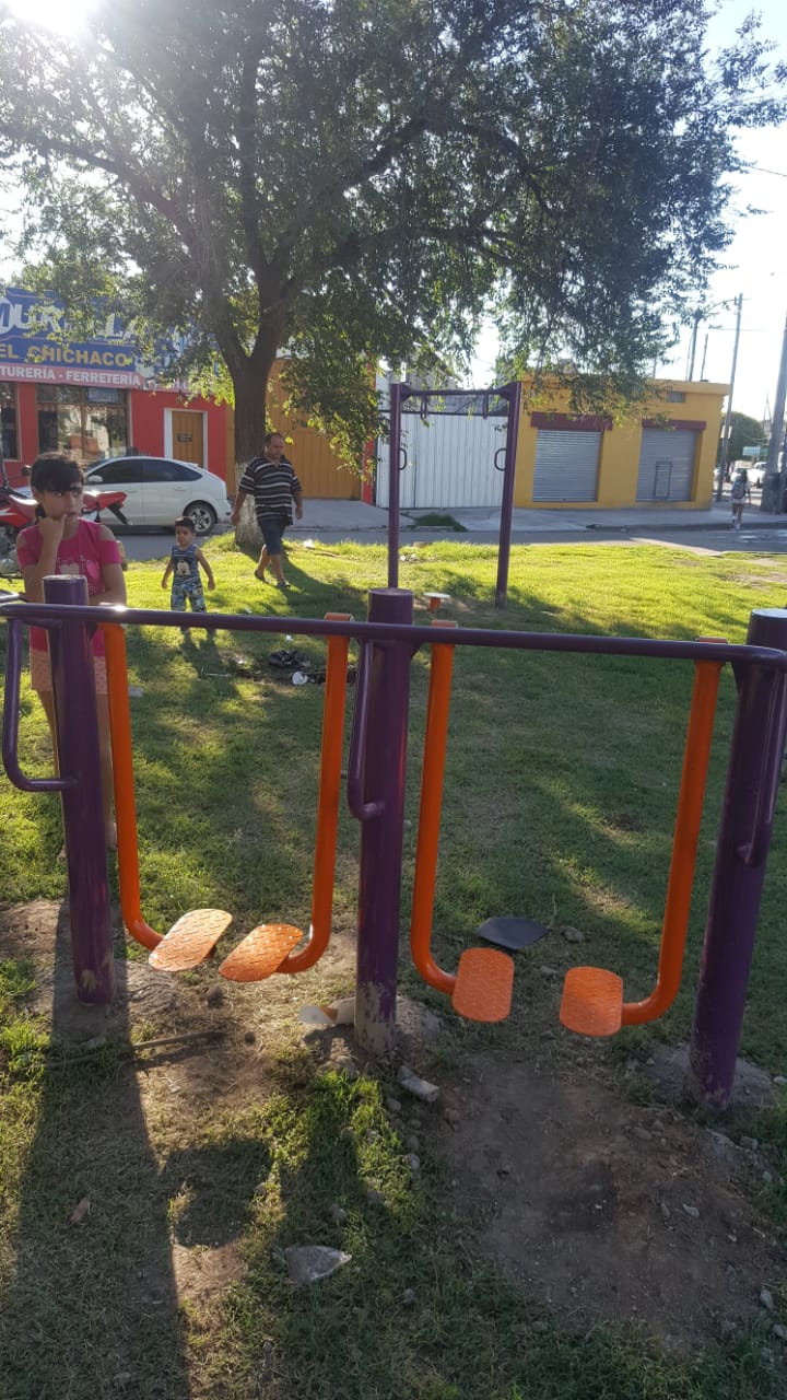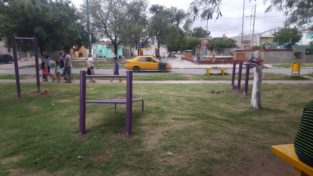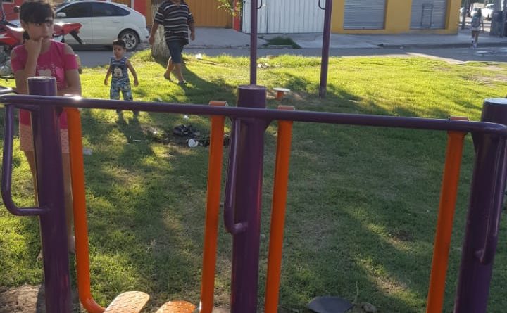El centro vecinal Villa el Libertador instaló un kit de juegos saludables en la plaza de la Virgen, por avenida de Mayo y Chiclayo.