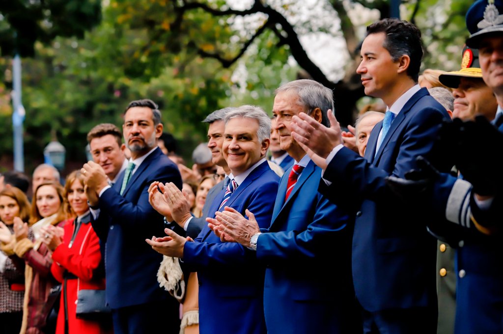 Seguidamente, se trasladaron hacia la plaza central acompañados por el gobernador Juan Schiaretti. En la Plaza San Martín y en comunidad se llevó a cabo el izamiento de nuestro pabellón nacional.