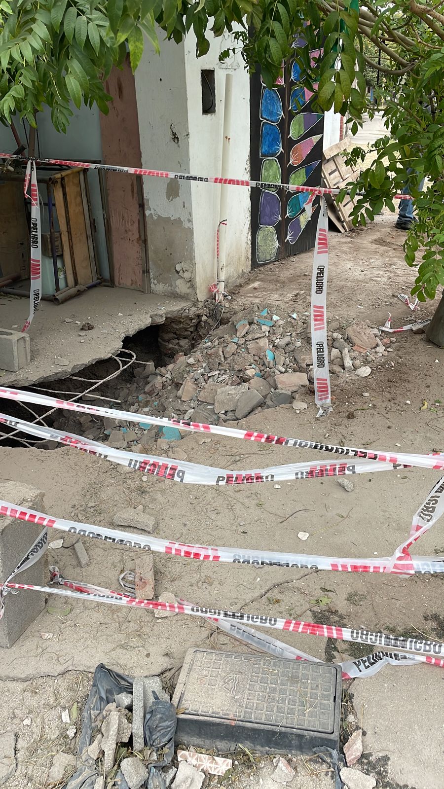 Hoy, jueves, se envió maquinaria con escombros para empezar a rellenar el pozo (un cráter, realmente) para brindar una solución definitiva.