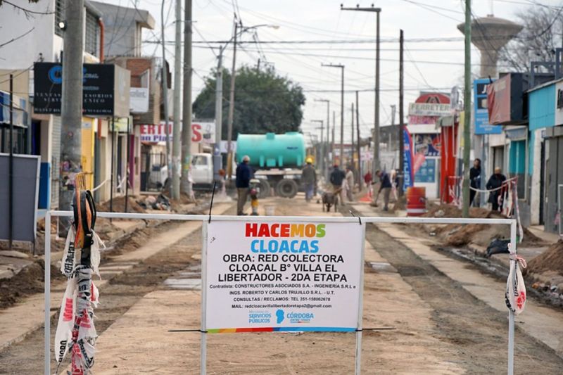 El Ministerio de Servicios Públicos trabaja en la ejecución de redes colectoras cloacales domiciliarias para Villa El Libertador. Con un avance del 53%, a la fecha se colocaron cerca de 25.000 metros de cañería, 300 bocas de registro y casi 3.000 derivaciones para conexiones domiciliarias.