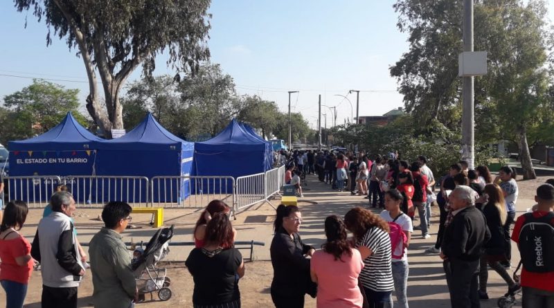 Cola de gente por el “Estado en tu barrio” en la plaza de Villa El Libertador