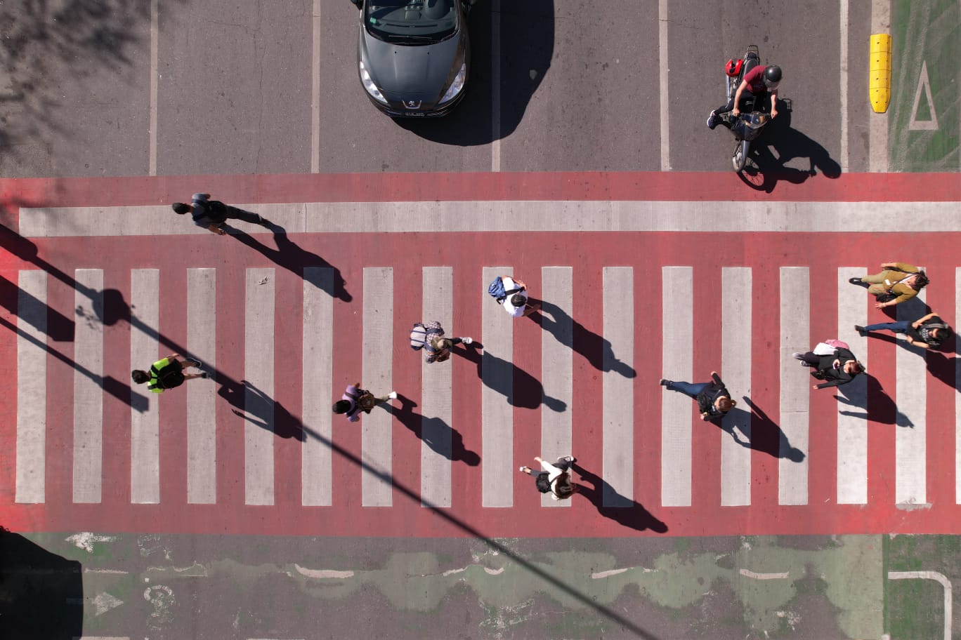 Entre las obras, a cargo de la Secretaría de Desarrollo Metropolitano, se destaca la renovación de cruces peatonales con una base de pintura roja sobre la que se demarcan los bastones blancos de las sendas peatonales.