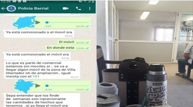 Desde las 2 y 30 horas de la madrugada, Elisa reclamó insistentemente un móvil al grupo de WhatsApp de la Policía Barrial y las respuestas iban desde “ya está comisionado el móvil” hasta la admisión de la falta de patrulleros para la zona de Comercial. (Ver capturas)