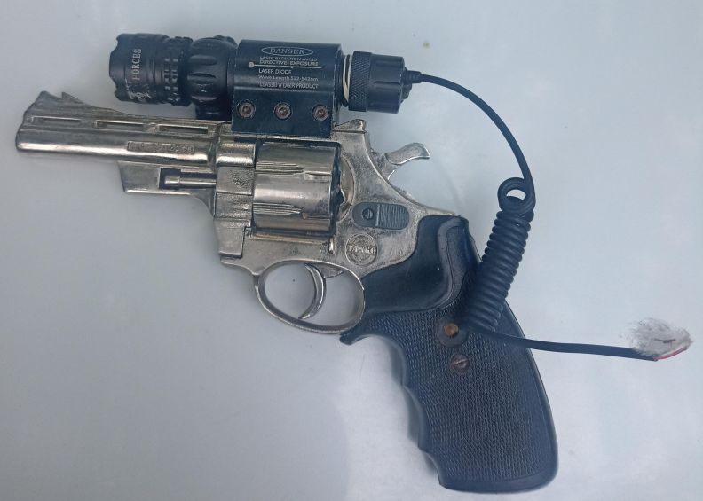 Momentos después, se incautó un revolver calibre 32 con mira láser, el cual se hallaba en el domicilio de la aprehendida.