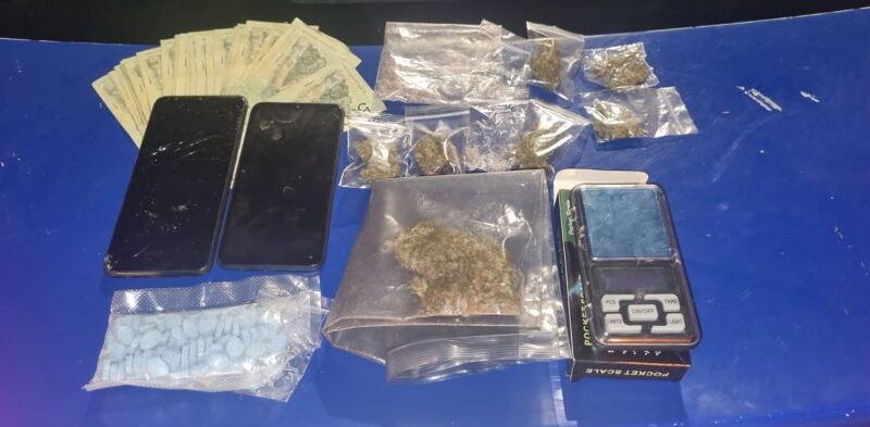 En el procedimiento se secuestró el rodado mencionado, 80 pastillas de éxtasis, varios gramos de cogollo de marihuana, una balanza de precisión y una suma de dinero.