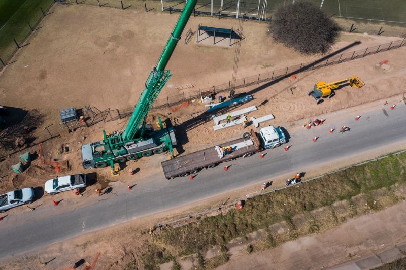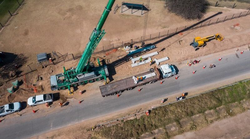 La empresa Caminos de las Sierras comenzó el montaje de columnas para la construcción de una pasarela peatonal a la altura del km 18 de la Avenida Circunvalación.