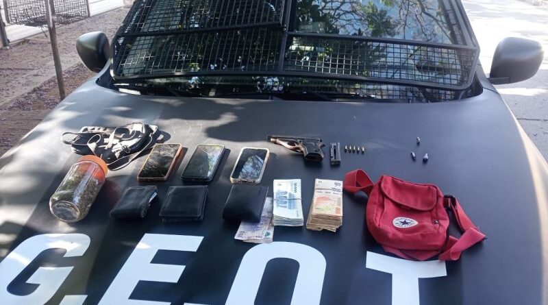 Durante el procedimiento, los efectivos encontraron dentro del habitáculo un frasco con aparentemente marihuana, una pistola calibre 22 con cinco cartuchos, tres teléfonos celulares y una suma de dinero en efectivo.