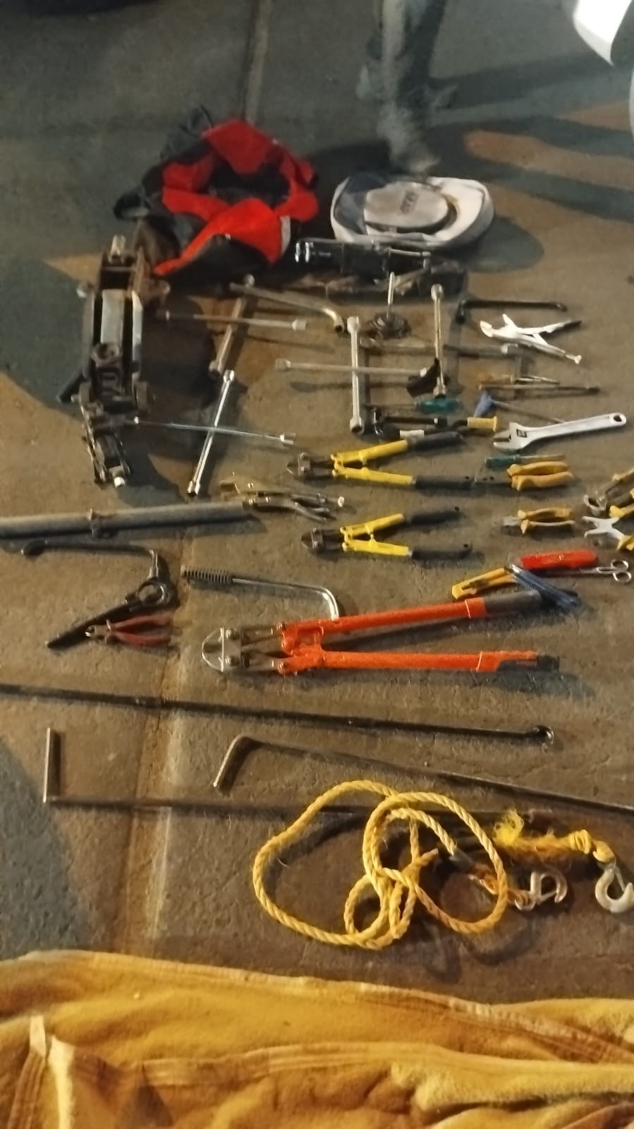 En calles Esperanto & Humberto Primo de B° Marechal, personal policial detuvo a dos hombres de 22 y 43 años (éste último con antecedentes delictivos), con el secuestro de un vehículo marca Peugeot 308 (registra pedido solicitado por la justicia), 4 llaves cruz, pinzas, alicates, 4 corta pernos, ganzúas, gatos mecánicos, entre otras herramientas.