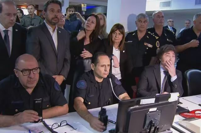 El presidente Javier Milei estuvo en el Departamento Central de la Policía Federal para monitorear la movilización y el accionar de las fuerzas de seguridad.