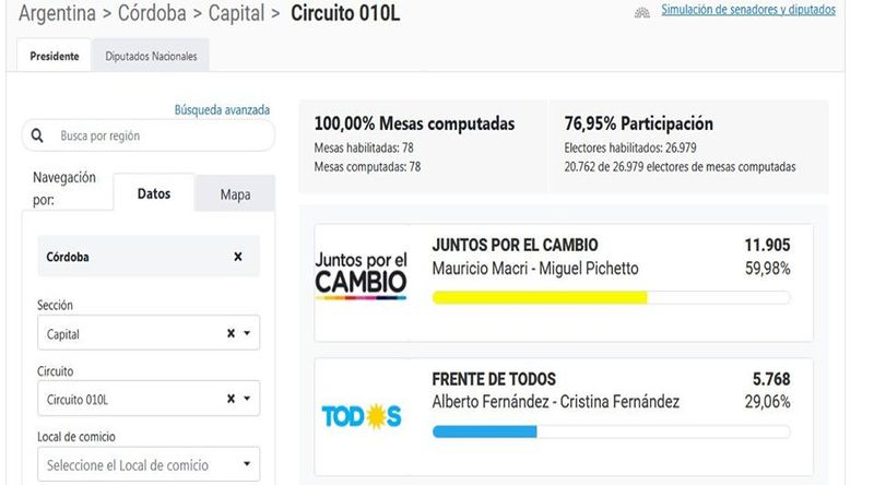 Se impuso por una diferencia de más de 6.100 votos al Frente de Todos, según la imagen del escrutinio provisorio adjunto.