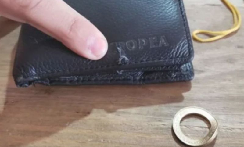 Ante esta situación, el ladrón le disparó y huyó, mientras que el impacto de bala dio en la moneda que quedó dividida en dos partes: “Traspasó la billetera de cuero y al otro día me dí cuenta que había pegado en la moneda y la dobló, eso fue lo que desvió la bala”, contó.
