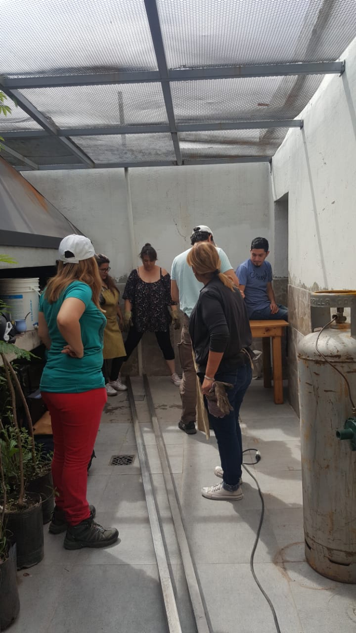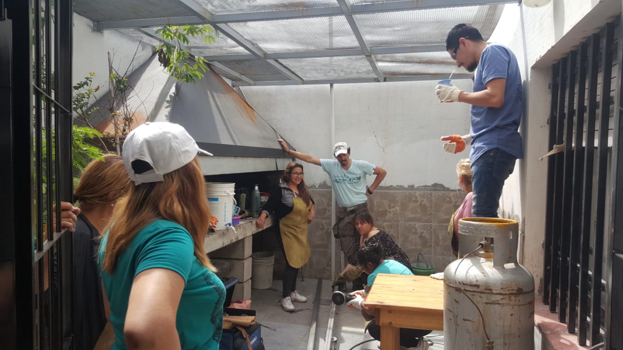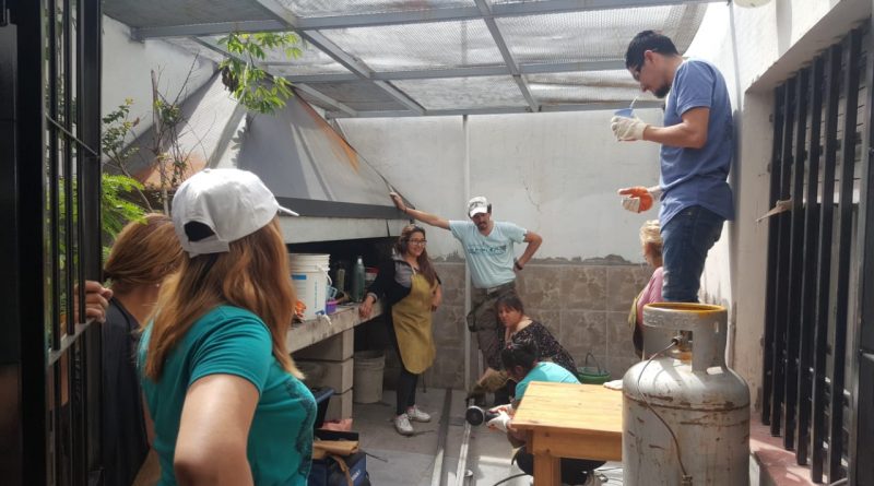 Los miembros de la comisión vecinal de Villa El Libertador arreglan el patio de la sede con ayuda de las mujeres que estudian soldadura en la escuela de Formación Profesional en la Escuela Salvador Campoli dependiente de la Secretaría de Equidad y Promoción del Empleo. (Información sobre la Escuela: www.facebook.com/salvadorcampoli/)