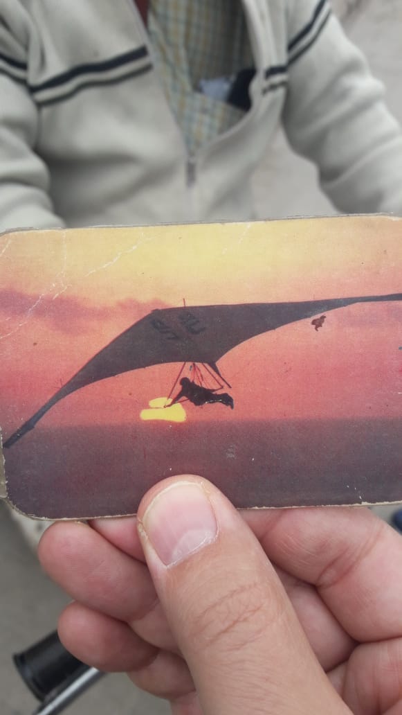 Jesús cuenta que vive en una casa que cuida, que antes trabajaba de gasista, que tiene una discapacidad que no sabe definir. Consultado sobre cuál fue la causa , sorprende al mostrar una tarjeta con la imagen de un hombre sobre un ala delta y, al dorso, su identificación de “gasista instalador”.