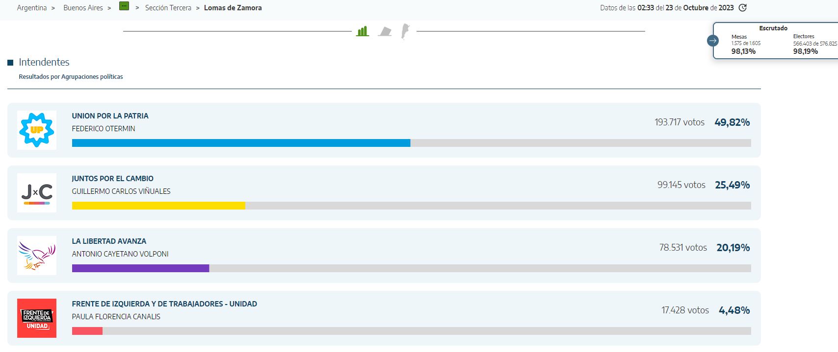 (Mario Albera) En Lomas de Zamora, provincia de Buenos Aires, Federico Otermín ganó la elección para intendente con casi el 50 por ciento de los votos de la población.