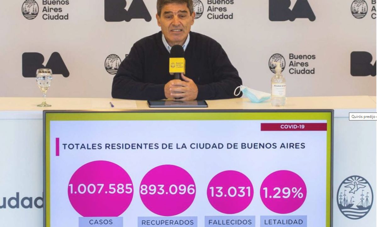 “En este año vamos a salir de esta zona de transición a una circulación de virus más”, afirmó Quirós, en diálogo con Pablo Rossi en Esta Mañana por radio Rivadavia. Asimismo, el funcionario que responde a Horacio Rodríguez Larreta insistió con la aplicación de las vacunas para combatir el virus y explicó que las primeras dosis aplicadas han ido perdiendo efectividad.